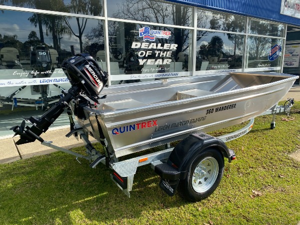 LET'S GO GET SOME CRAYS.....Quintrex 360 Wanderer, Mercury 6hp 4 Stroke, Easytow Galv Trailer, Safety Gear, Vic Rego, Hold Downs & Motor Stay.