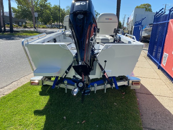 Package includes Deluxe Side Console, Mercury 50hp EFI 4 Stroke, Telwater Alloy I-Beam Braked Trailer, Finished in Blue and fitted with Rear Transom Step, Nav Lights, Bilge Pump, Battery Isolation Switch.